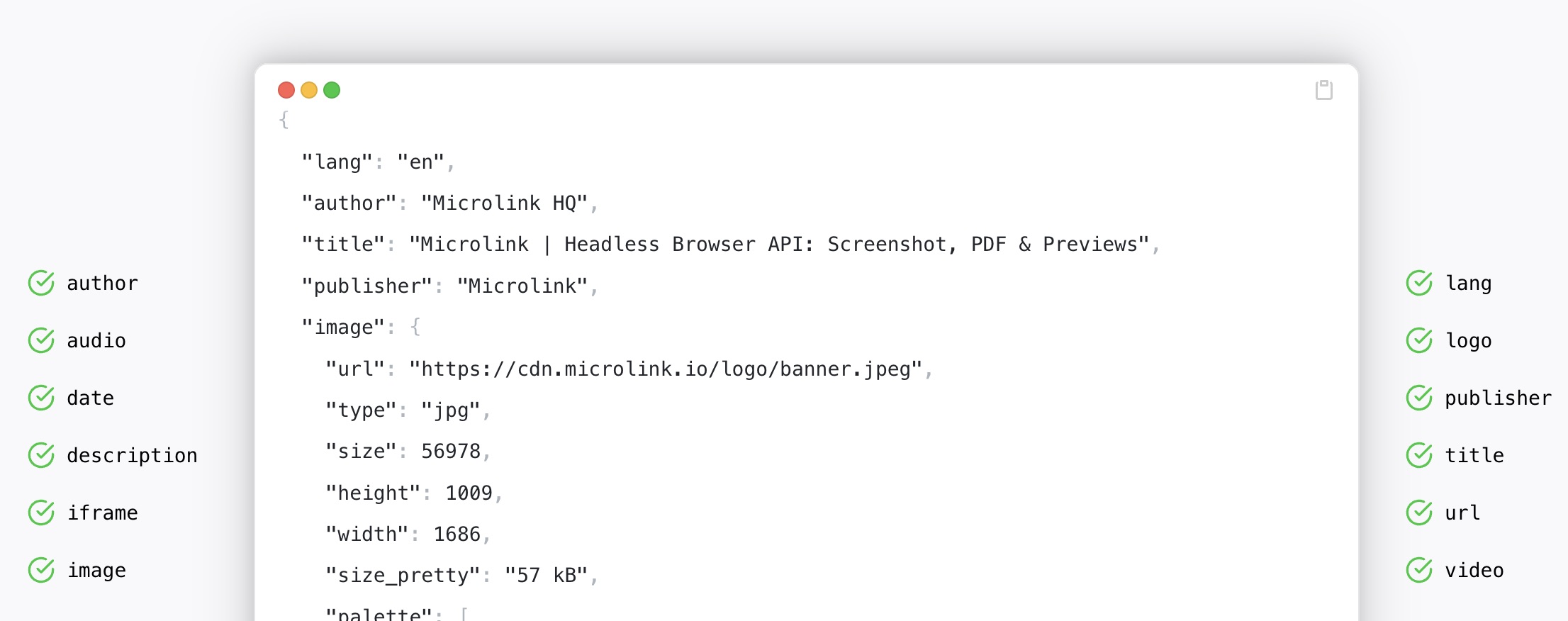 If you donβt want to manage that infrastructure, you can use the fully managed Microlink API.